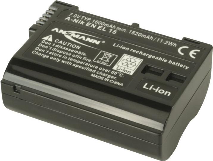 ANSMANN A-Nik EN EL 15 - Kamerabatterie Li-Ion 1600 mAh - für Nikon D600, D610, D7000, D7100, D750, D800, D800E, D810, D810A; 1 V1 (1400-0043)