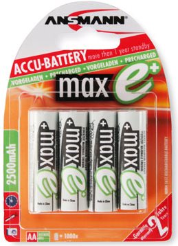 Bei dieser Generation von Akkubatterien wurde die Kapazität nochmals deutlich erhöht. Bisher waren Mignon-Akkubatterien lediglich mit 2100 mAh verfügbar. Die maxE plus Zelle erreicht hingegen 2500 mAh und verlängert so die Nutzungsdauer Ihrer Geräte um bis zu 20%.