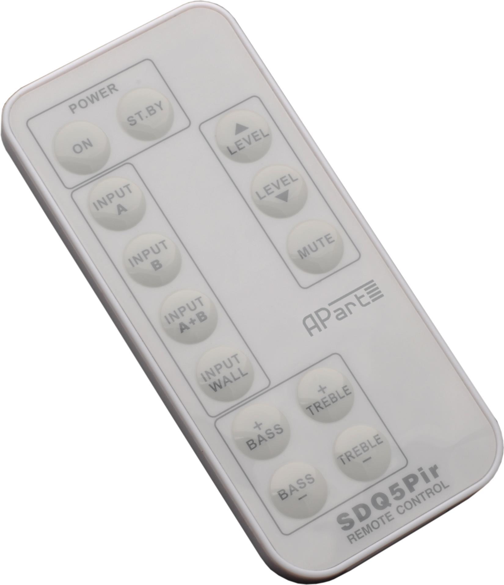 Das Apart SDQ5Pir Aktivlautsprecher-Set ist ein flexibles und einfach zu installierendes Soundsystem. Es besteht aus einem aktiven Lautsprecher mit integriertem Stereoverstärker und einem 5.25- Bass- und 1- Hochtonchassis und einer identisch bestückten passiven Box. Das Set ist magnetisch abgeschirmt.Das Set wird entweder über die beiliegende IR-Remote ferngesteuert, oder über RS232 oder optional erhältliche Wandpanels (mit oder ohne lokalem Eingang) gesteuert. Die Auto-Off Funktion schaltet die Lautsprecher nach einer definierten Zeit ab, wenn kein Eingangssignal anliegt. Über RS232 Befehle kann das Zeitintervall programmiert werden.Weitere Vorteile der Box: definierbarer Maximalpegel, zweifache Eingänge: unsymmetrisch auf Mini-Klinke und symmetrisch auf Euroblock plus einem Eingang über die optionalen Wandpanel mit lokalem Eingang. Die Verstärkung ist für jeden Eingang einstellbar, die Eingänge (mit Ausnahme des lokalen Eingangs am Wandpanel!) können gemischt werden, oder separat verwendet werden. Zum Einschalten des Lautsprechers über das Eingangssignal ist die Autopower-Funktion (AUTOPW) zu aktivieren. Der Threshold kann über RS232 definiert werden (AUPTRG).Hauptmerkmale