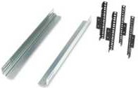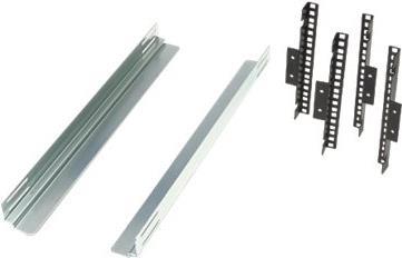 Tragschienen sind eine ideale Lösung für die Montage von Geräten, die nicht für einen Rack-Einbau vorgesehen sind. Diese Schienen können für Geräte mit einer Breite zwischen 43 und 45 cm und einem Maximalgewicht von 91 kg eingesetzt werden. Die Tragschienen werden an den seitlichen Montageöffnungen der senkrechten Montageschienen angebracht.