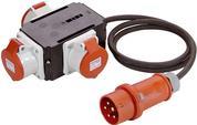 MIXO-Stromverteiler 400V \"\"ODER\"\"IP44Gehäuse aus hochbruchfestem Spezialkunststoff.Technische Daten: Anschlusstyp A (bzw. Eingänge): CEE-SteckerAnschlusstyp B (bzw. Ausgänge): CEE-KupplungAusgänge: 3 CEE-Dosen 32 A, 5poligEingänge: 1 CEE-Stecker 32 A, 5poligKabel-Typ nach DIN/VDE: H07RN-F 5G 4 mm²Kabellänge: 1.5 mNenn-Ausgangsspannung: 400 VNenn-Eingangsspannung: 400 VNenn-Eingangsstrom: 32 ASchutzart: IP44Zulassungen, Normen: Geprüft nach DIN VDE 0620-1, IEC 60309, RN-F geprüft nach DIN VDE 0282-4