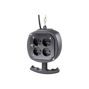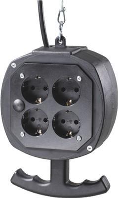 Hängeverteiler ES1 \"\"Watzmann\"\"IP20Strom und Druckluft direkt über dem Arbeitsplatz. Auf gewünsche Arbeitshöhe abhängbarer Verteiler. Gehäuse aus Spezial-Kunststoff mit Handgriff/ Werkzeughaken. Pneumatik-Armatur aus Messing blank mit Einhand-Schnellkupplung.Technische Daten: Anzahl Schutzkontakt-/Euro-Steckdosen: 8/0Ausführung: ohne Druckluft-ZuleitungFarbe: SchwarzKabellänge: 3 mKabeltyp: H05VV-F 3G 1,5 mm²Kinderschutz: NeinNennspannung: 230 V/ACSchutzart: IP20Lieferumfang: Inkl. 3 m verzinkter Stahl-Gliederkette.
