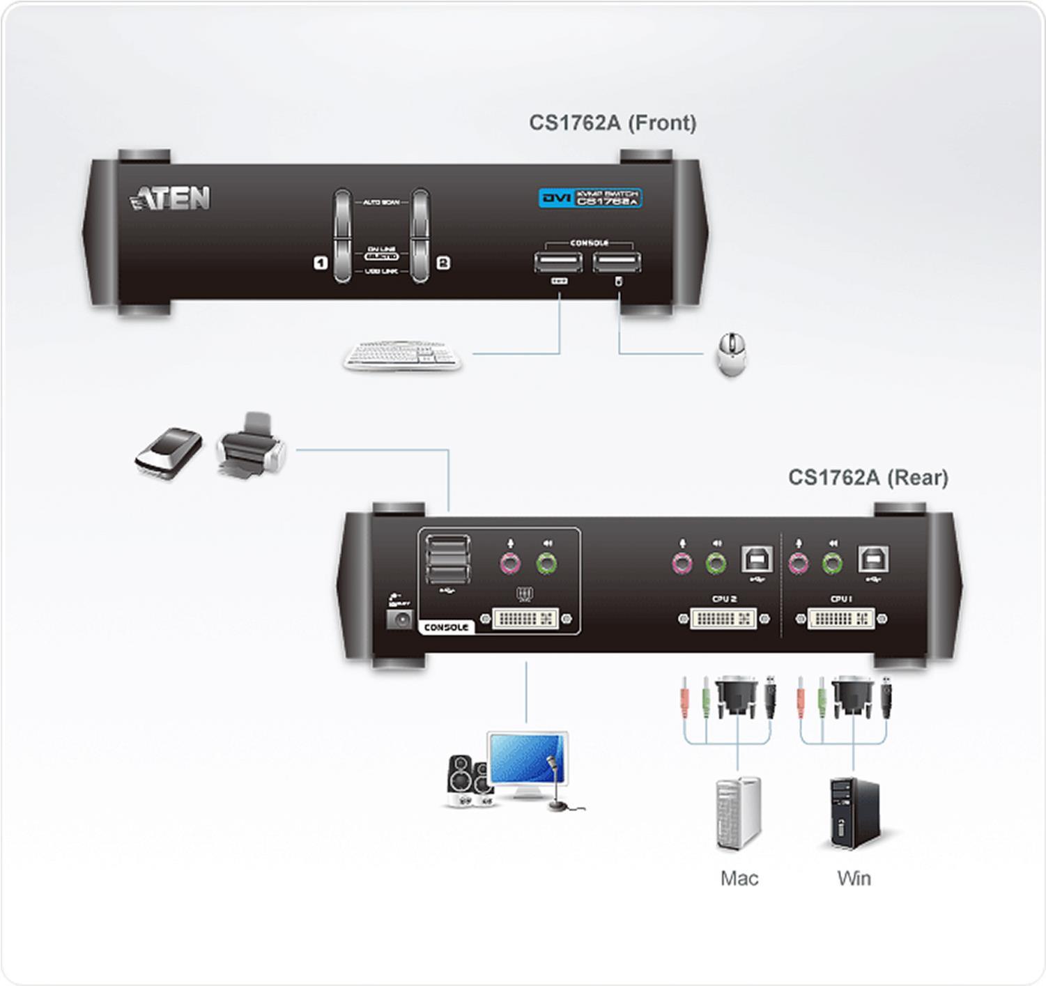 | Produktbeschreibung | ATEN CubiQ CS1762A - KVM-/Audio-Switch - 2 Anschlüsse |
