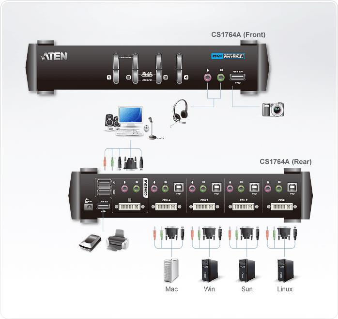 | Produktbeschreibung | ATEN CubiQ CS1764A - KVM-/Audio-Switch - 4 Anschlüsse - Desktop |