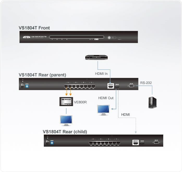 | Produktbeschreibung | ATEN VS1804T HDMI Over Cat 5 Splitter - Erweiterung für Video/Audio - HDMI |