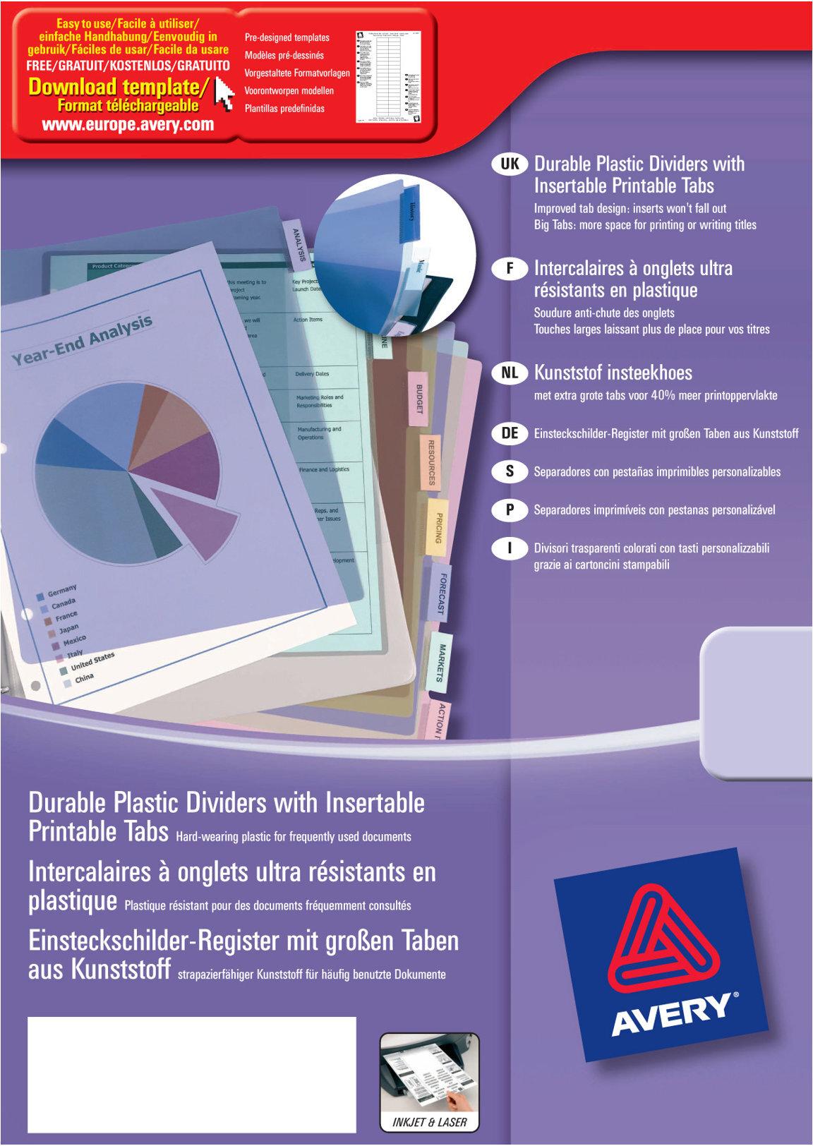 Ordnung erleichtert die Arbeit - ob in Ihren privaten und geschäftlichen Unterlagen. Die Register von Avery Zweckform unterstützen Sie hier tatkräftig: sie sind von Hand oder per PC beschriftbar, trennen Themengebiete und bringen so Struktur in Ihre Mappen, Ordner oder Präsentationen. Das Ordner-Register aus stabilem Karton ist an Taben und Lochung folienverstärkt für eine dauerhafte Verwendung. Die Ordner-Register sind mit dem Altpapier recyclebar und FSC zertifiziert. So erhalten Sie einen hoch-professionellen Look für den robusten, tagtäglichen Gebrauch. Sie können die Register ganz individuell und einfach auf Ihrem PC gestalten und mit einem Inkjet- oder Laserdrucker bedrucken.