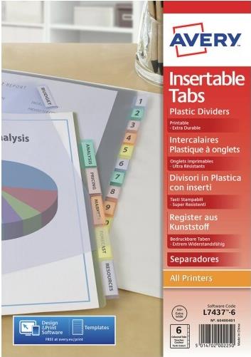 Avery Showtassen met bedrukbare tabs A4 met 12 tabs (set 12 vel) Nicht klebendes Druckeretikett (05614501)
