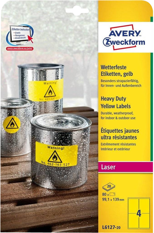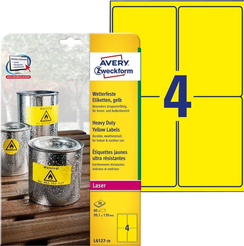 Avery Zweckform - Paper - Polyester - Gelb - 99,1 x 139 mm 80 Etikett(en) (20 Bogen x 4) (L6127-20)