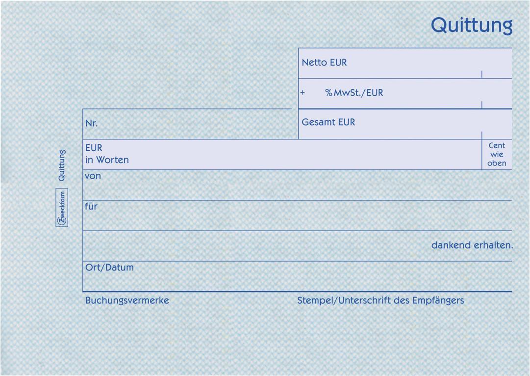 AVERY Zweckform Formularbuch "Quittung mit MwSt.-Nachweis A6 quer, 100 Blatt, Recyclingpapier, ausgezeichnet mit blauem Engel (1250)
