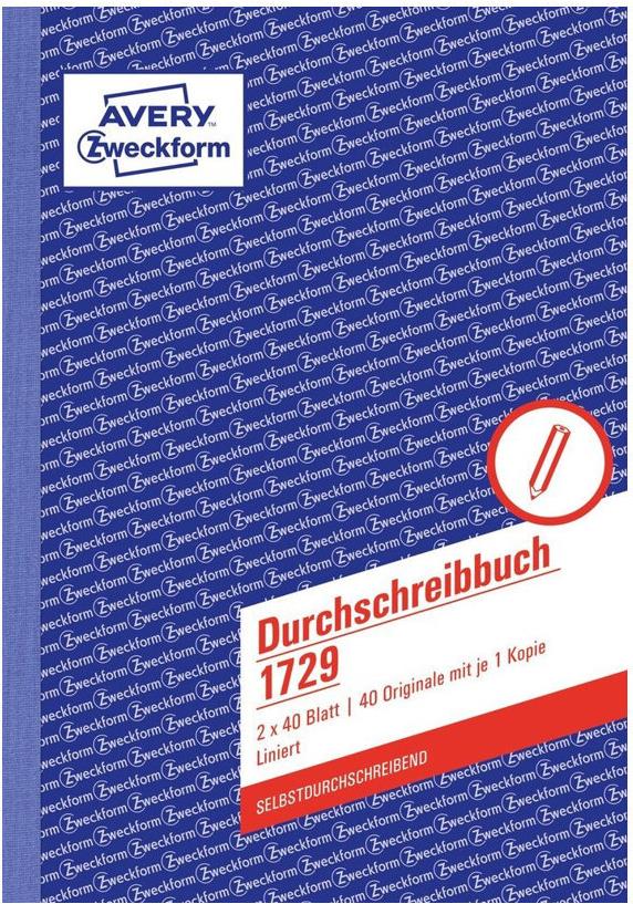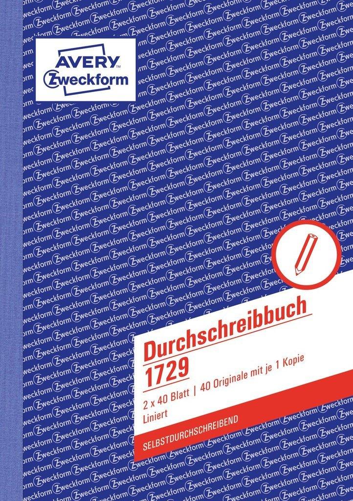 AVERY Zweckform Formularbuch "Durchschreibebuch", A5 2 x 40 Blatt, 1. und 2. Blatt liniert, selbstdurchschreibend (1729)