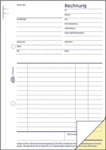 Sie sind Kleinunternehmer? Diese Rechnung ist speziell zur Verwendung durch Kleinunternehmer gemäß §19 des Umsatzsteuergesetzes (UStG) geeignet, da Kleinunternehmer in ihren Rechnungen keine Mehrwertsteuer ausweisen dürfen. Dieses Rechnungsbuch im handlichen A5 Format hilft Ihnen schnell, unkompliziert und zuverlässig, die Übersicht zu behalten. Denn es ist einfach und praxisgerecht gestaltet, so enthält es z.B. alle rechtlich erforderlichen Angaben wie Steuernummer, Umsatzsteuer-Identifikationsnummer, Bankverbindung sowie Angaben zu Artikeln und Preisen. Damit stellen Sie die steuerliche Anerkennung beim Rechnung Schreiben sicher. Die 40 Rechnungsvorlagen sind mit jeweils 1 gelben, selbstdurchschreibenden Durchschlag ausgestattet, das erleichtert Ihnen die Organisation und Archivierung. Im täglichen Geschäft und auch bei privaten Abrechnungen sind Formularbücher und Vorlagen immer noch oft die einzig wahre Lösung. Unsere Vordrucke sind auf die verschiedensten Bedürfnisse angepasst und unterstützen Sie bei Ihrer Warenwirtschaft, Buchhaltung, Steuer oder einfachen Verträgen. Die qualitativ hochwertigen Vorlagen sind selbstdurchschreibend, FSC® zertifiziert und an das SEPA Verfahren angepasst. Natürlich werden alle unsere Formulare regelmäßig von Rechtsexperten auf die rechtliche Aktualität geprüft. Schließlich haben wir als Erfinder der Quittung einen riesigen Erfahrungsvorsprung!