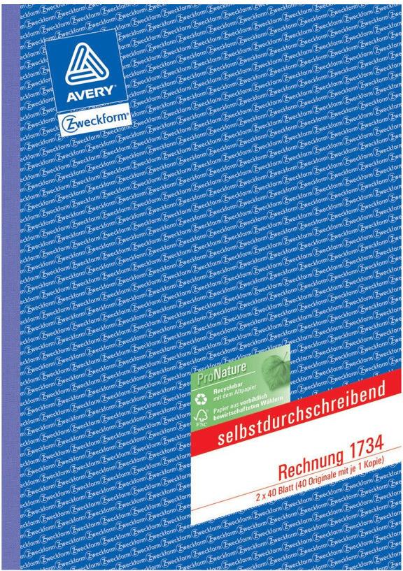 AVERY Zweckform Formularbuch "Rechnung", SD, 2 x 40 Blatt - für den Markt: D - L - A (1734)