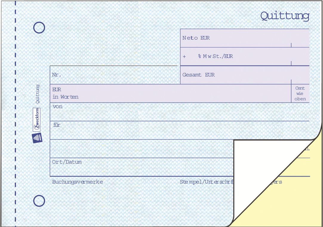 AVERY Zweckform Formularbuch "Quittung mit MwSt.", SD A6 quer, 2 x 40 Blatt, 1. und 2. Blatt bedruckt FSC-zertifiziert (1735)