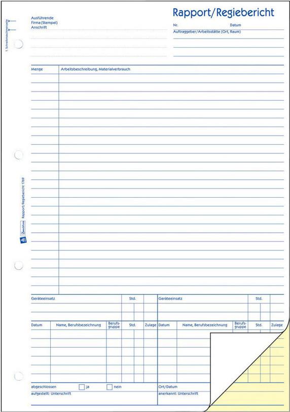 AVERY Zweckform Formularbuch "Rapport-Regiebericht", SD, A4 - für den Markt: D - L - A - CH (1769)