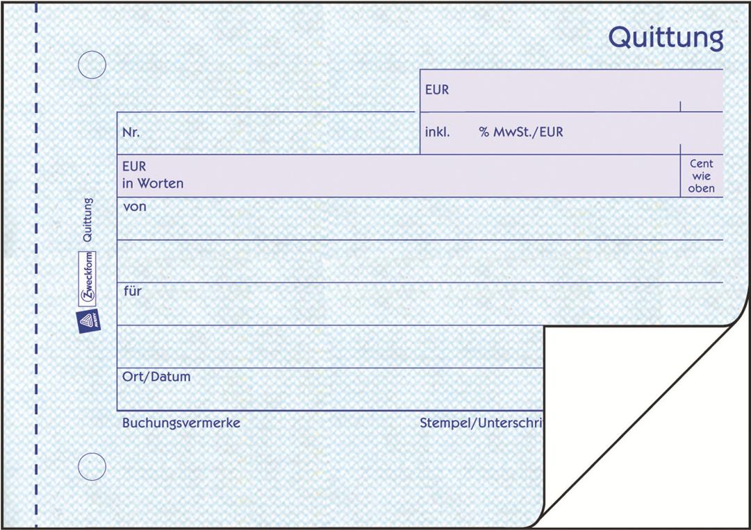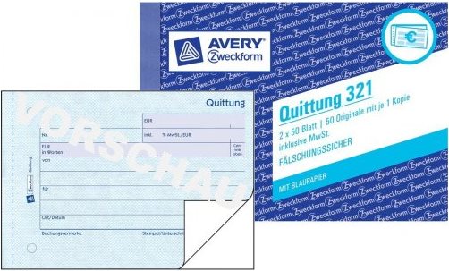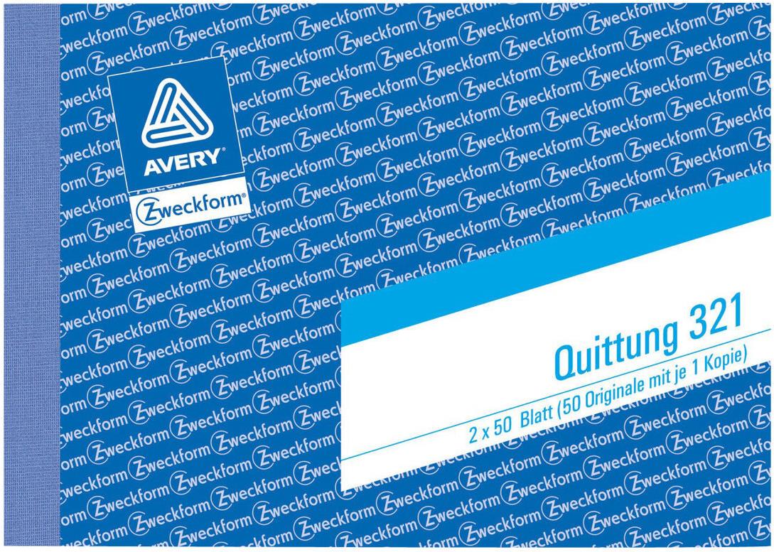AVERY Zweckform Formularbuch "Quittung", A6 quer, 2x50 Blatt 2. Blatt ohne Perforation zum Verbleib im Buch (321)