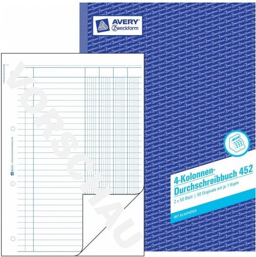AVERY Zweckform Formularbuch "4 Kolonnen-Durchschreibbuch - für den Markt: D - L - A (452)