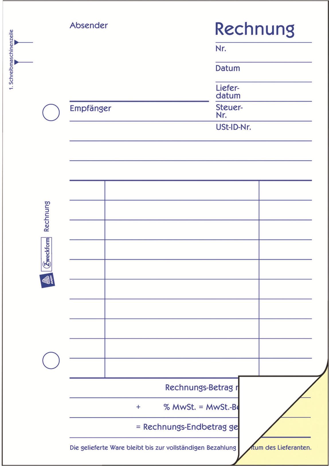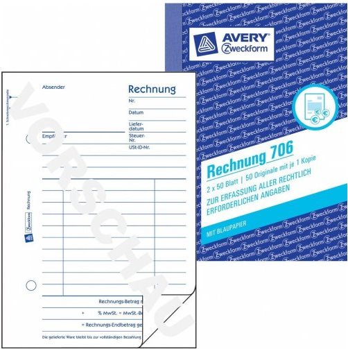 AVERY Zweckform Formularbuch "Rechnung", A6, 2 x 50 Blatt 2. Blatt ohne Perforation zum Verbleib im Buch (706)