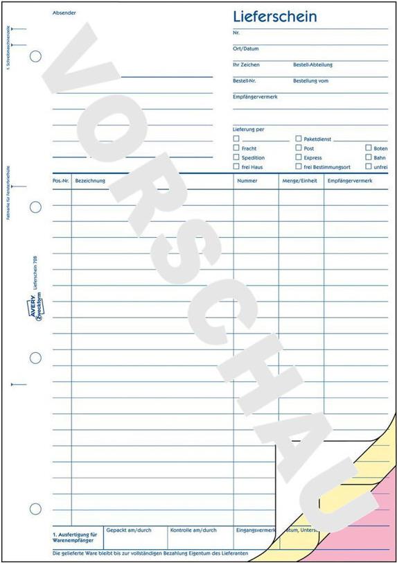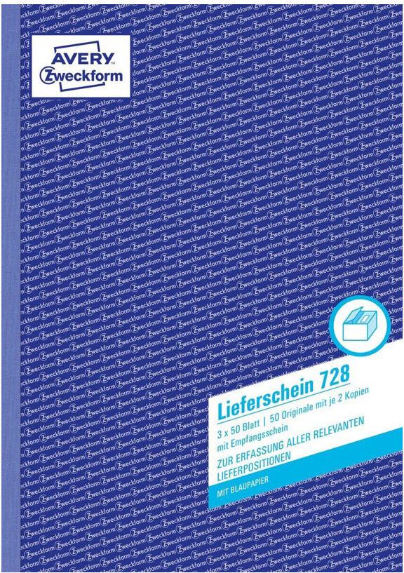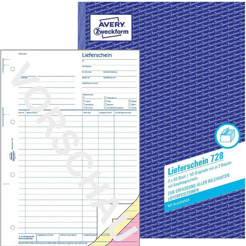 AVERY Zweckform Formularbuch "Liefer--Empfangsschein", A4 1., 2. und 3 Blatt bedruckt, mit 2 Blatt Blaupapier (728)