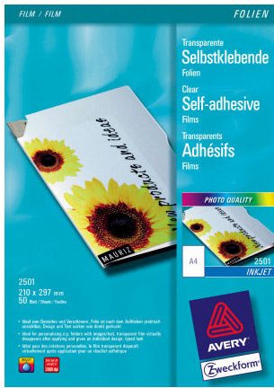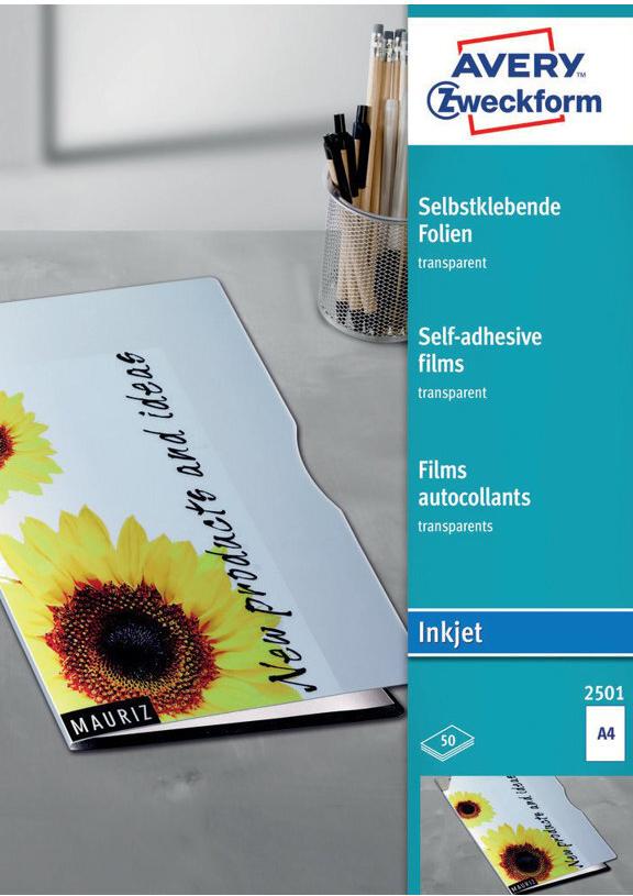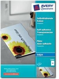 AVERY Zweckform Inkjet Folien, A4, klar, Stärke 0,17 mm stapelverarbeitbar, selbstklebend (2501)