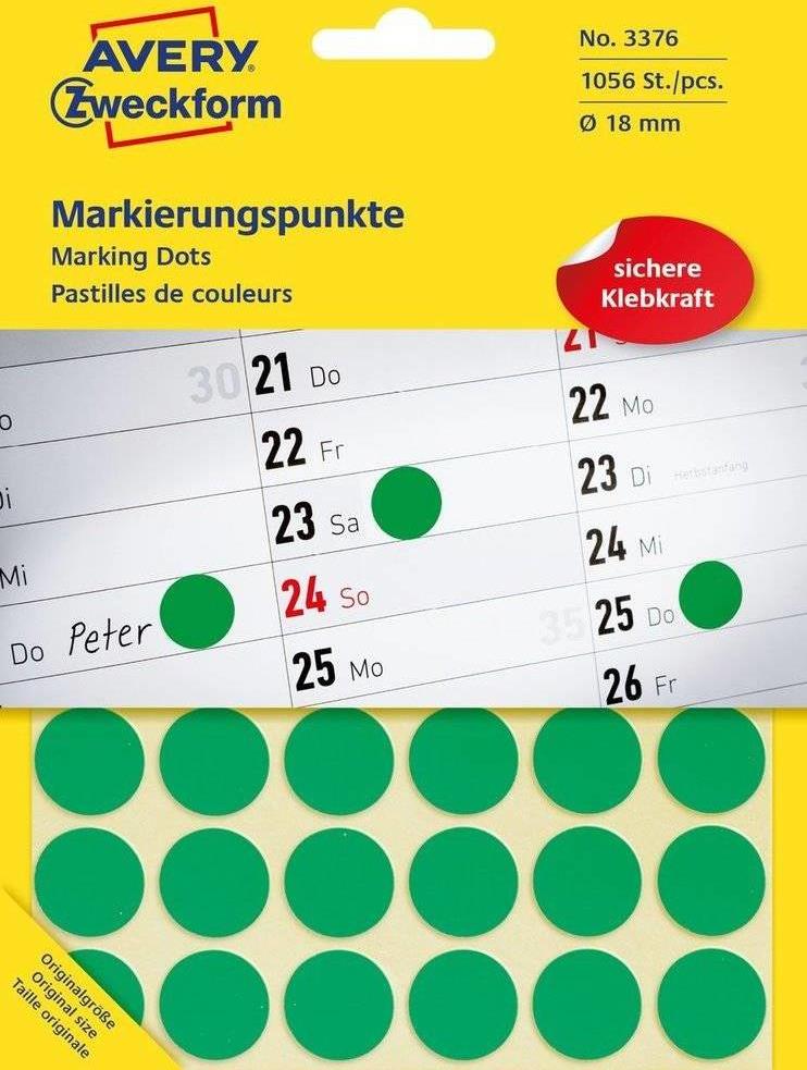 Avery Markierungspunkte - grün - permanent - Grün - Kreis - Dauerhaft - Papier - 1,8 cm - 1056 Stück(e) (3376)