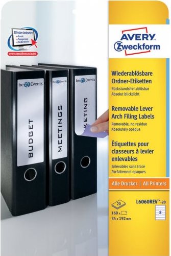 Avery L6060REV-20 - Weiß - Abgerundetes Rechteck - 34 x 192 mm - A4 - Papier - Universal (L6060REV-20)