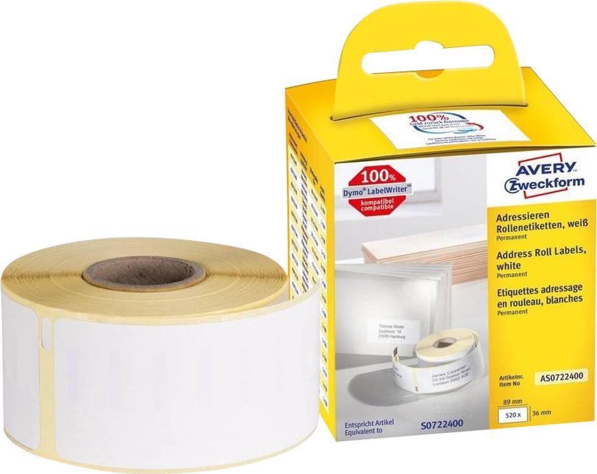 Avery Zweckform - Papier - permanenter Klebstoff - weiß - 36 x 89 mm 520 Etikett(en) (2 Rolle(n) x 260) Etiketten (AS0722400)