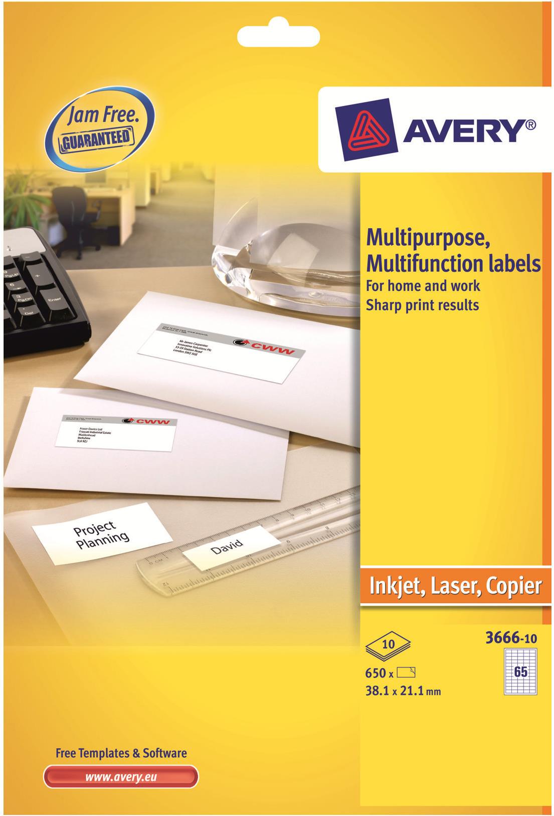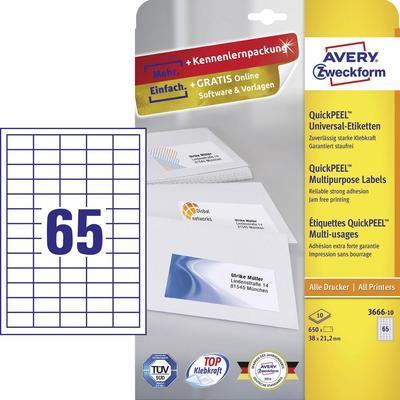 Avery 3666-10 Rechteck Dauerhaft Weiß 650Stück(e) selbstklebendes Etikett (3666-10)