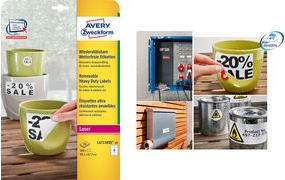 Strapazierfähig und flexibel auch mal für härtere Bedingungen: Die wiederablösbaren, wetterfesten Etiketten von Avery Zweckform überzeugen durch Ihre starke Haftung sogar draußen bei Wind und Wetter und sind wiederablösbar, ohne Kleberückstände zu hinterlassen. Die beschichteten, weißen Folienetiketten eignen sich perfekt für Promotions, temporäre Produkt-und Eigentums-Kennzeichnung oder bei wechselnden Informationen im Lagerbereich. Denn sie sind öl- und schmutzbeständig, resistent gegen UV-Strahlung, temperaturbeständig (-20 °C bis +80 °C) und wasser- und reißfest. Die wetterfesten Etiketten überzeugen mit einem gestochen scharfem Druckbild ohne Verwischen. Die vielseitig verwendbaren Aufkleber bieten Ihnen natürlich unsere bewährte Top Qualität mit zuverlässig starker Klebkraft zum Wiederablösen auf den verschiedensten Oberflächen. Diese Qualität stellen wir durch regelmäßige Tests in unseren Prüflabors sicher. Sie können sich dabei auf einen garantiert staufreien Druckerdurchlauf ohne Klebstoffablagerungen im Drucker verlassen. Die Etiketten können auf allen gängigen Inkjetdruckern bedruckt werden.