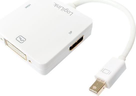 Der Adapter 3-in-1 Mini DisplayPort auf HDMI/DVI/DisplayPort Adapter von LogiLink ermöglicht den Betrieb von HDMI/DVI/DisplayPort Endgeräten am Mini DisplayPort Ihres Notebooks oder PC\'s. Unterstützt durch den DVI-I Standard kann die maximale HDMI Auflösung bis zu 1080p übertragen werden. Die Stromversorgung erfolgt über den Mini DisplayPort. Er ist z. B. ideal geeignet zum Betrieb von Beamer, TFT, Plasma oder LCD TV mit HDMI/DVI/DisplayPort Anschluss an einem Macbook oder Macbook Pro von Apple.Hauptmerkmale