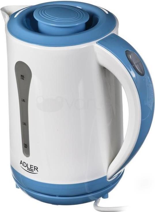 Adler AD 1244 Type Standard kettle, White/Blue, 2000 W, 2.5 L, 360° rotational base (AD 1244)