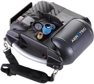 Tragbarer Kolbenkompressor in ölfreier Ausführung. Extra flache Bauweise, dadurch platzsparend. Kompressor kann ...