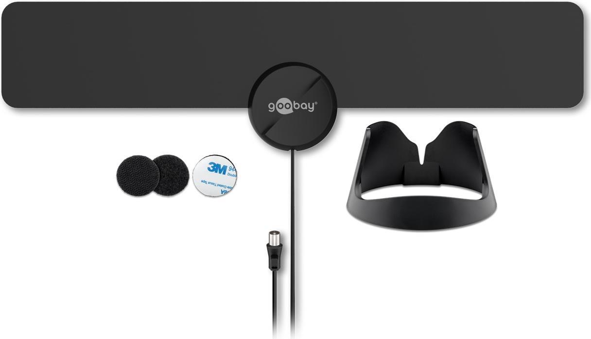• Wentronic Goobay Ultraflache Full HD DVB-T Zimmerantenne, inkl. LTE/4G Filter, Schwarz - zum Empfang von DVB-T/DVB-T2 HD mit 30 dB Verstärkung (67183)