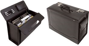 Seitentasche, zwei Zahlenkombinationsschlösser. Innen: Gepolstertes Laptopfach, Reißverschlussetui sowie drei Schreibgeräteschlaufen im Deckel, A4 Einschubfach, ...