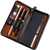 Alassio Schreibgeräte-Etui, für 3 Schreibgeräte, schwarz aus Leder, zwei Schlaufen für USB-Sticks, Einschubfach, - 1 Stück (2638)