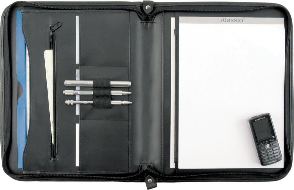 Alassio Schreibmappe "MILANO", DIN A4, Leder, schwarz Einschubfach für ein DIN A4 Schreibblock, zusätzliches (30013)