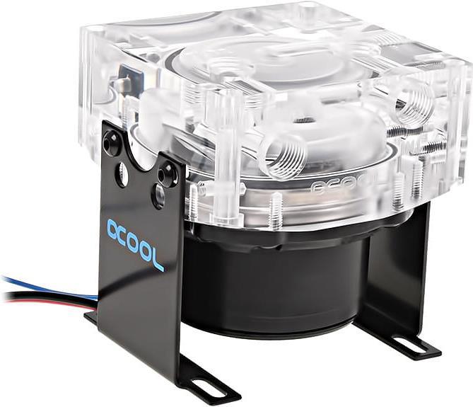 Alphacools Powerpumpenserie, einmalige Performance zu einem unschlagbaren Preis. Die 12V-Pumpen können einfach ans Netzteil angeschlossen werden und schon startet die Pumpe zusammen mit dem Rechner! So werden maximaler Komfort und größtmögliche Sicherheit erreicht.Diese Pumpe ist ideal für die Wasserkühlung von PCs und anderen elektronischen Komponenten geeignet. Die Gleichstrommotorpumpe ist mit einem elektronisch kommutierten sphärischen Motor ausgestattet. In einer Pumpe mit sphärischem Motor ist der einzige bewegte Teil ein sphärisch geformter Rotor, Welcher in diesem Falle auf einer Lagerkugel aus ultra-harter und verschleißfester Keramik aufliegt. Die sphärische Lagerung des Rotors bietet eine Vielzahl von Vorteilen: So ist eine Zunahme des Lagerspiels konstruktionsbedingt nicht möglich, die Pumpe wird stets gleichbleibend leise und ruhig laufen. Eine separate magnetische Schirmung ist bei dieser Pumpe ebenso nicht von Nöten. Das Kugelmotorprinzip erlaubt effizienten Betrieb bei exzellenter Performance. Alle Teile der Pumpe sind völlig korrosionsbeständig. Die Pumpe wird einfach an einem 12V Molex-Anschluss des PC-Netzteils betrieben.Die Besonderheit dieses Modell ist, dass nur direkt der Pumpenkern geliefert wird. Warum auch nicht, möchte man die Pumpe doch eh mit einen alternativen Deckel oder Ausgleichsbehälter verbinden, warum sollte man für das drumherum mehr bezahlen? Ein weiteres Feature befindet sich auf der Hinterseite, mit einer kleinen Drehbewegung kann die Pumpe in 5 verschiedenen Pumpstufen geregelt werden.