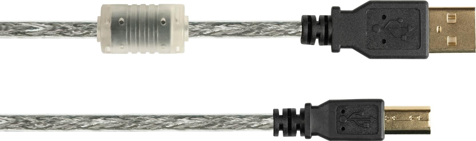 Anschlusskabel USB 2.0 High Quality mit Ferritkern und Goldkontakten, transparent, 5m, Good Connections® (2510-5TQ)