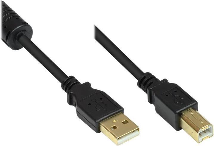 Anschlusskabel USB 2.0 Stecker A an Stecker B, mit Ferritkern, vergoldet, schwarz, 5m, Good Connections (GC-M0083)