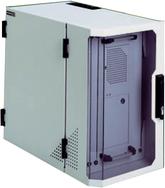 Die Serie Vari 2000 stellt die optimale Ergänzung zu den bewährten apra-norm Wandgehäusen Vari 500 dar. Sie ist in 3, 4, 6 und 12 HE lieferbar. Die Prägnanz dieser Gehäuse liegt in der Konstruktion, die 48,30cm (19")-Ebene senkrecht an die Wand zu legen, so dass die Geräteeinbautiefe nicht in den Raum hineinragt. Die Tür der Gehäuseserie Vari 2000 gewährt ohne Schwenken der 48,30cm (19")-Ebene den vollen Zugriff von zwei offenen Seiten. Bei den Vari 2000 Wandgehäusen mit 3 und 4 HE ist die Tür einteilig mit Sichtfenster ausgelegt. Bei den Größen 6 und 12 HE ist die Tür zweiteilig zu öffnen, so dass Sie zuerst den Bereich mit der Sichtscheibe für den vor der 48,30cm (19")-Ebene liegenden Bereich öffnen und danach den gesamten hinteren Verkabelungsraum freilegen. Die kombinierte Front- und Seitentür kann mit unterschiedlichen Schließsystemen ausgestattet werden, so dass definierte Zugangsberechtigungen vergeben werden können. Durch das apra-norm 180 °-Scharnier können die Vari 2000-Gehäuse auch in Raumecken bei voller 90 °-Öffnung installiert werden.