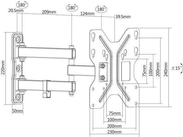 DIGITUS DA-90357 - Befestigungskit (Neigungs-/Schwenkwandmontage) für LCD-Display - Bildschirmgröße: 48,3 -106,7 cm (19"-42") (DA-90357)