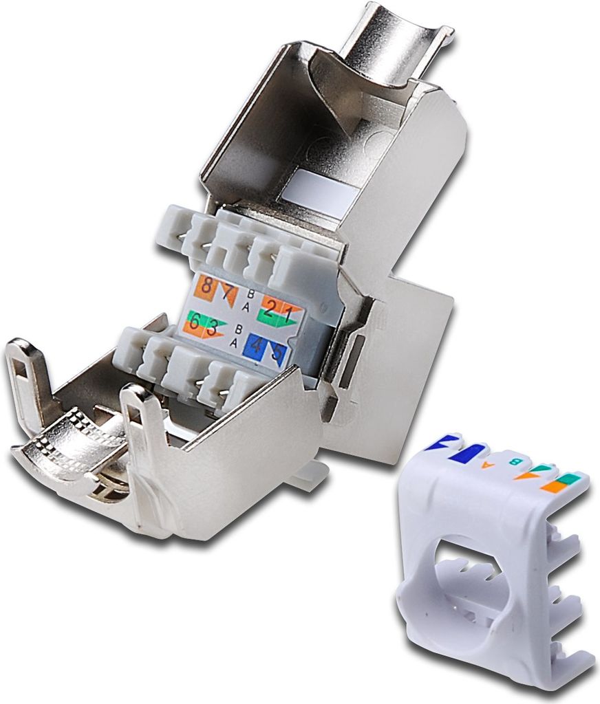 Das geschirmte CAT 6A Keystone Modul-Set DN-93615 von DIGITUS® überzeugt durch zukunftsorientierte Standards und High-End Qualität für Ihr Netzwerk. Die kompakte Bauform erlaubt eine Reiheninstallation in 483 mm (19) 1HE Panel. Die werkzeugfreie Installation erfolgt über LSA-Leisten, farbcodiert nach EIA/TIA 568 A&B. Durch seine kompakte Bauform passt das Modul außerdem in designkompatible modulare Anschlussdosen.