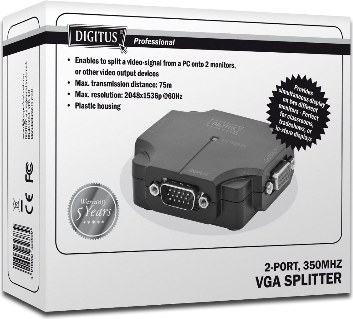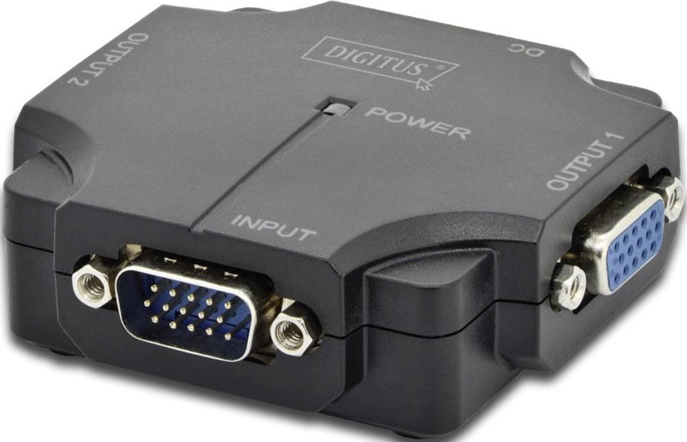 Assmann Digitus VGA Splitter. 2port. plastic housing 350 MHz. HDSUB 15/F -> 2x HDSUB 15/F max.res. 2048x1536 @ 60Hz (DS-41120-1)