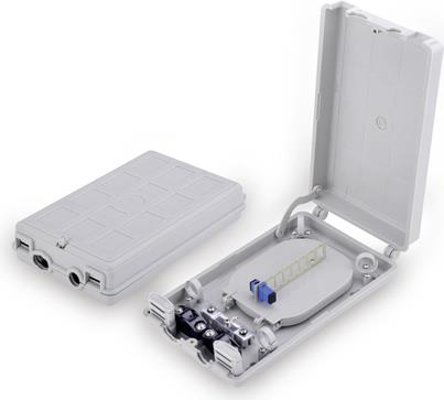 Die FTTH Box ist geeignet für die Außenmontage. Zur Glasfaserverteilung dient eine Halterung im Inneren für 8x. SC (SX) Kupplungen. Eine Überlängenablage für Pigtails sowie verschiedene Kabeleinlässe sorgen für bestmögliche Verkabelungsmöglichkeiten.