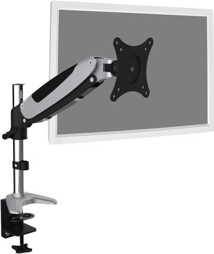 Mit dem Monitor Desktophalter können Sie einen Monitor der Größe 15" - 32" bequem per Klemmhalterung am Schreibtisch befestigen. Ohne großen Aufwand richten Sie die Monitore nach Ihren Bedürfnissen aus und können diese Schwenken, Neigen oder den Monitor selbst drehen z.B. für Hochformatmonitore. Die Unterstützung der integrierten Gasdruckfeder erleichtert Ihnen die Höhenverstellung Ihrer Monitore. Tun Sie sich und Ihrer Gesundheit etwas Gutes, indem Sie den Monitor optimal an Ihren Körper und Ihre Sitzposition anpassen. Zusätzlich lassen sich die Kabel der Monitore ordentlich durch die mitgelieferten Kabelführungen verlegen.