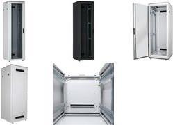 Die Netzwerkschränke der Unique Serie wurden für eine besonders komfortable und flexible Netzwerkverkabelung designt und produziert. Durchdachte Optimierungen bieten marktkonforme Stabilität bei maximaler Flexibilität. Ein modular, durch verschraubte 483 mm (19")-Blindplatten öffenbares Bodenchassis bietet ausreichend Platz für Kabel aller Art. Darüber hinaus befinden sich Kabeleinlässe mit Bürste im hinteren Bereich des Bodenchassis. Rückseitige Bürstenleisten ober- und unterhalb der Rücktür (ab 26HE), ermöglichen den Einsatz bei verschiedensten Anwendungsszenarien. Großzügige vertikale Kabelkanäle mit Kabelführungshilfen und Blende, verbaut in der Frontseite (ab 800 mm Schrankbreite), runden die vielfältigen Eigenschaften des Netzwerkschranks einwandfrei ab. Zwei Paar verkröpfte und galvanisch verzinkte, mit gegenläufig ablesbaren Höheneinheiten beschriftete 483 mm (19")-Profilschienen sind im Inneren verbaut. Sie lassen sich stufenlos verstellen und sind mit zusätzlichen Tiefenstreben im Schrank verbunden. Jeder Schrank ist eine robuste Stahlkonstruktion aus bis zu 1,5 mm starkem Stahlblech. Die Farbgebung erfolgt in Form von elektrostatischer Pulverbeschichtung in den Standardfarben Grau (RAL 7035) und Schwarz (RAL 9005). Modular abschließ- und abnehmbare Seitenwände sowie Türen verbessern die Zugänglichkeit. Ein Türanschlagswechsel kann vorgenommen werden. Des Weiteren sind die Schränke auf Grund der zerlegbaren Konstruktion bei Bedarf komplett demontierbar.