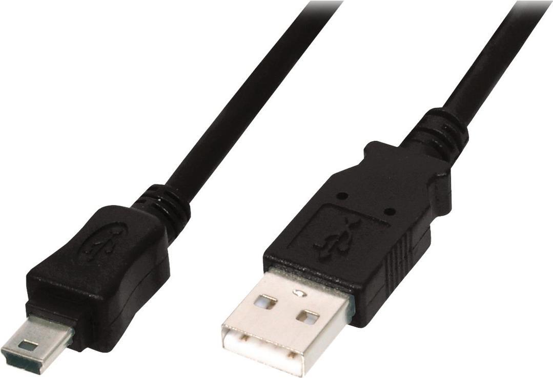 USB 2.0 Anschlusskabel, Typ A - mini B (5pin),St/St, 3.0m, USB 2.0 konform, sw