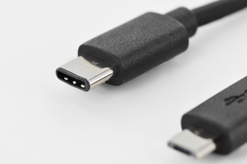 Assmann USB 3.0 Anschlusskabel Typ C auf Typ micro-B 1,8m schwarz Hohe USB-Datenübertragungsrate bis zu 480 Mbps - 3A Stromversorgung, Typ C-Stecker beidseitig verwendbar - Anschluss 1: USB C, Stecker - Anschluss 2: Micro USB B, Stecker - Schirmung: Doppelt geschirmt, UL-zertifiziert: UL2725 (AK-300137-018-S)