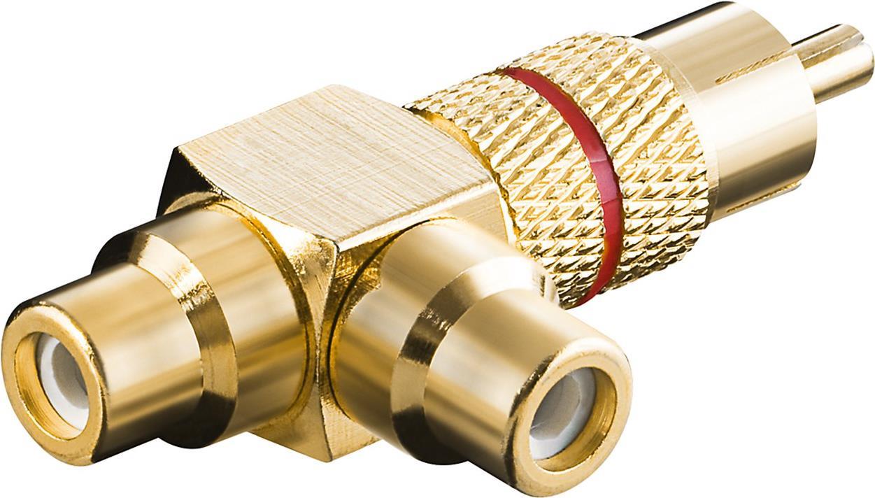 Audio-Adapter mit rotem Farbring Cinch Stecker>2xCinch Kupplung-vergoldet