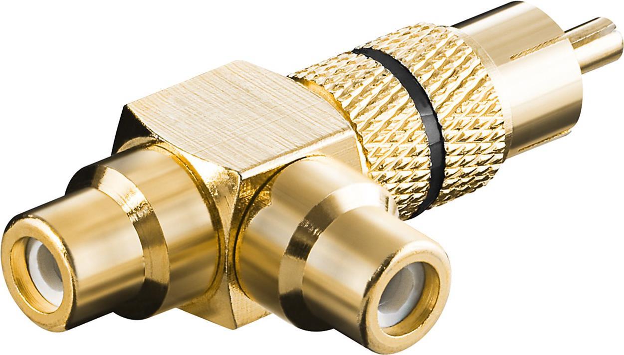 Audio-Adapter mit schwarzem Farbring Cinch Stecker>2xCinch Kupplung-vergoldet