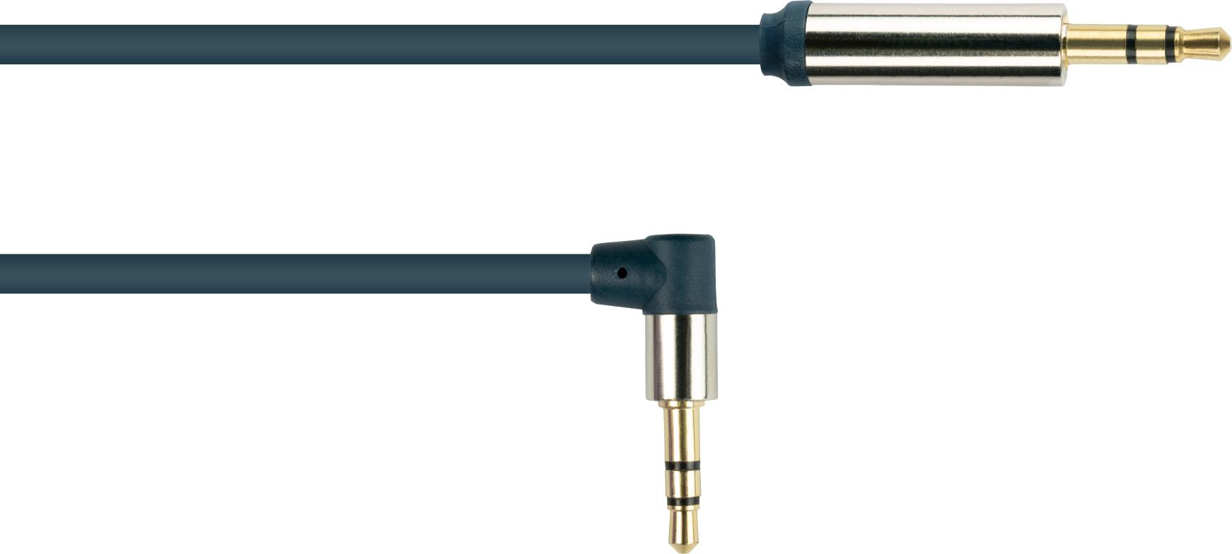 Audio Anschlusskabel High-Quality 3,5mm, Klinkenstecker an Klinkenstecker rechts abgewinkelt, Vollmetallgehäuse, dunkelblau, 3m, Good Connections (GC-M0048)